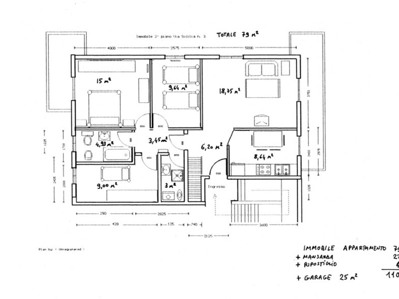 INGRESSO, CUCINA ABITABILE GIA' AMMOBILIATA, SOGGIORNO, TRE CAMERE, DUE BAGNI.