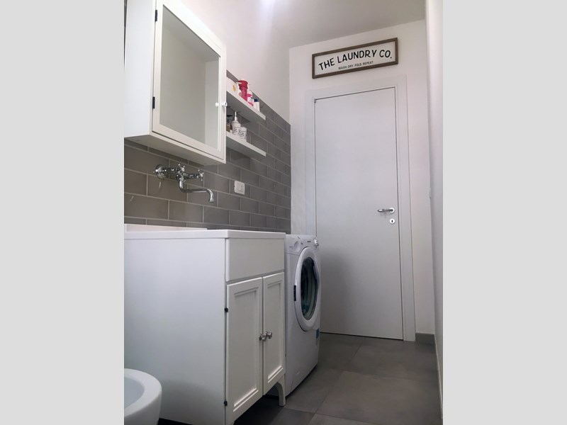 Piano 1°, zona giorno ampio open living, cucina, ampio bagno con doccia filo pavimento e lavabo d'appoggio, ampio secondo bagno con comoda lavanderia, ripostiglio attrezzato e due spaziose camere da letto, possibilità di ricavare facilmente una terza camera e/o studio.