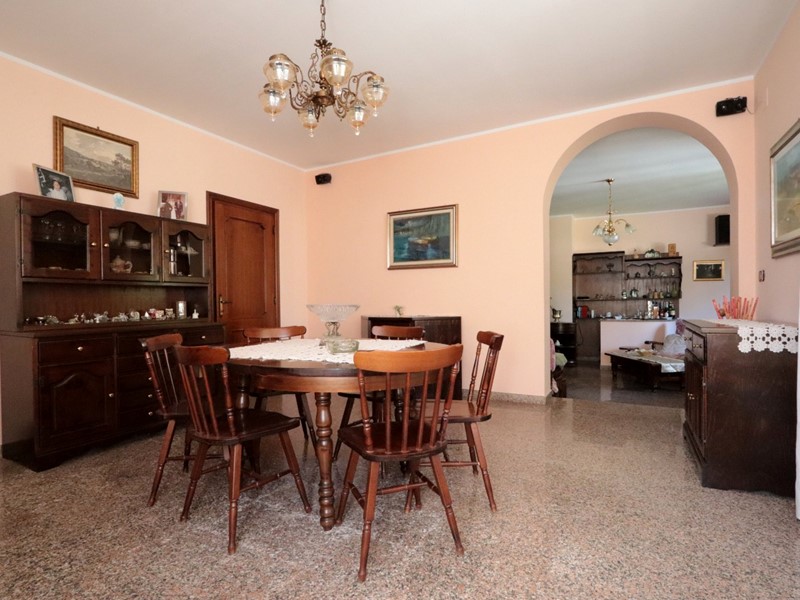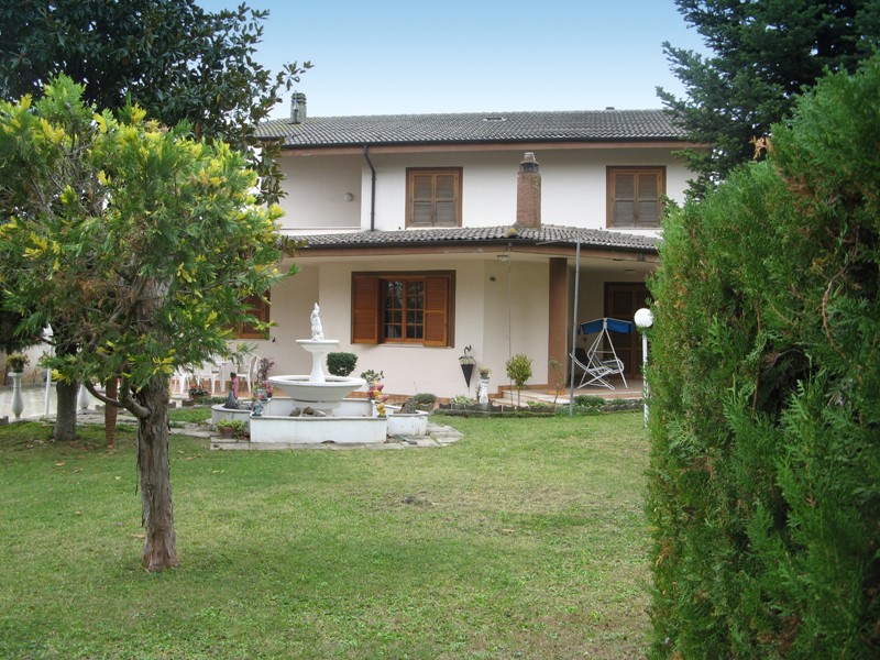 Villa di tre livelli (302 mq.l.) + garage (28 mq.l.) + giardino di circa 1.100 mq. con 4 camere da letto e 4 bagni in zona residenziale di pregio presso il centro del paese. La villa è una costruzione in cemento armato di gradevole e funzionale articolazione, costruita verso metà degli anni ’80 ed attualmente in ottime condizioni; è circondata da un bel giardino alberato, pavimentato in parte e recintato con muratura, su cui insistono anche vari ed utili annessi (pergola, rimessa attrezzi, legnaia/ripostiglio).