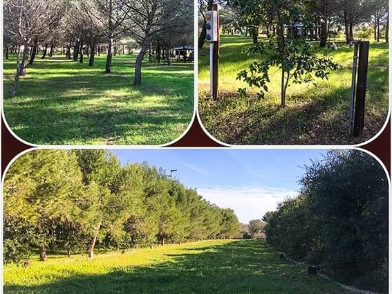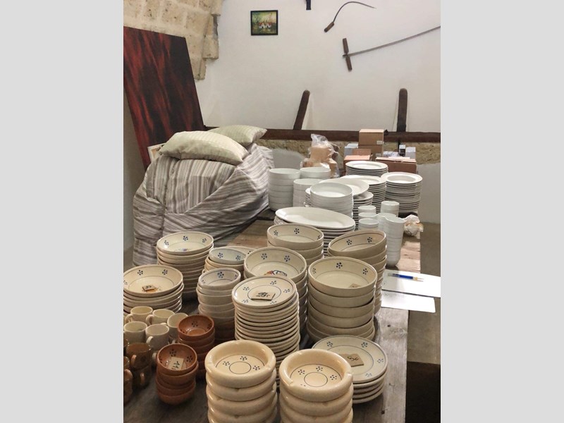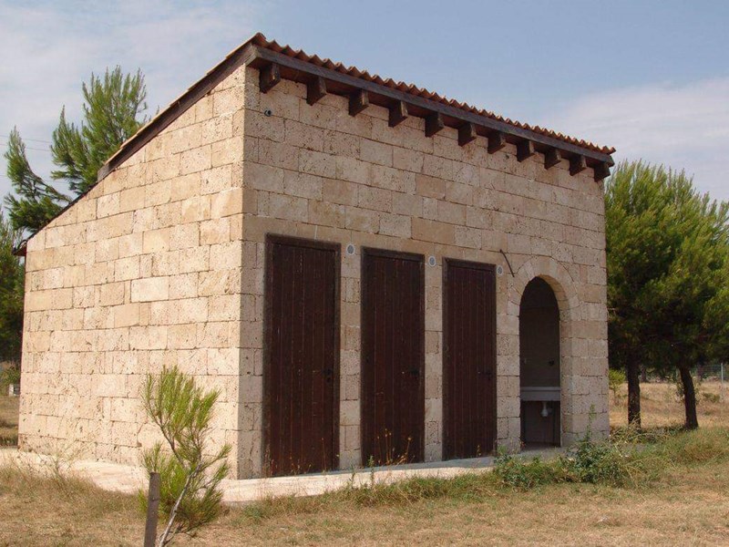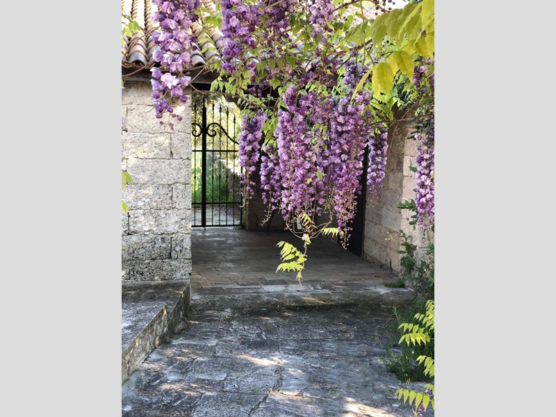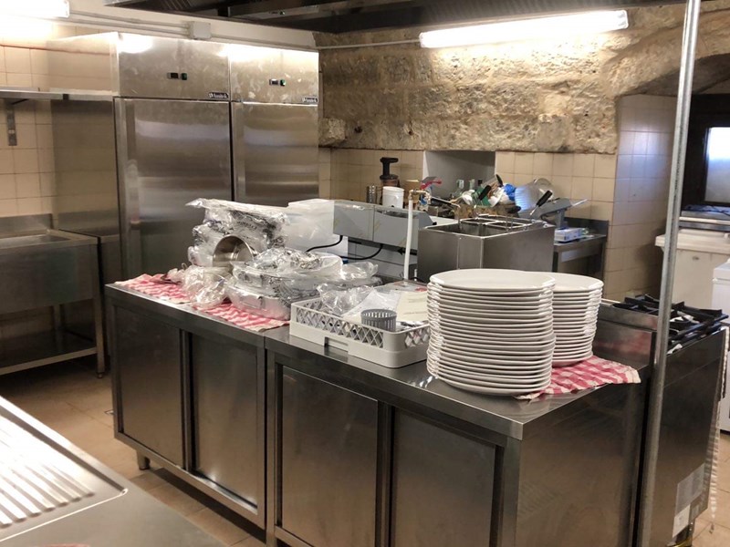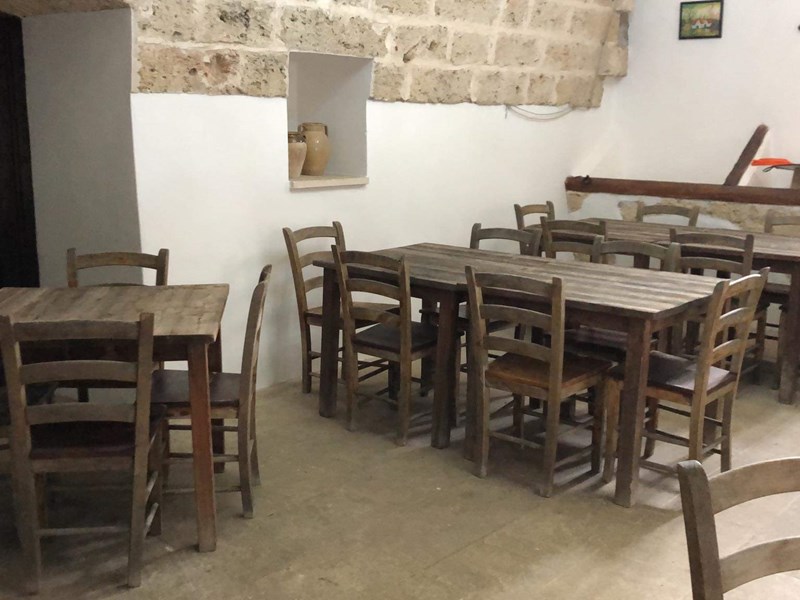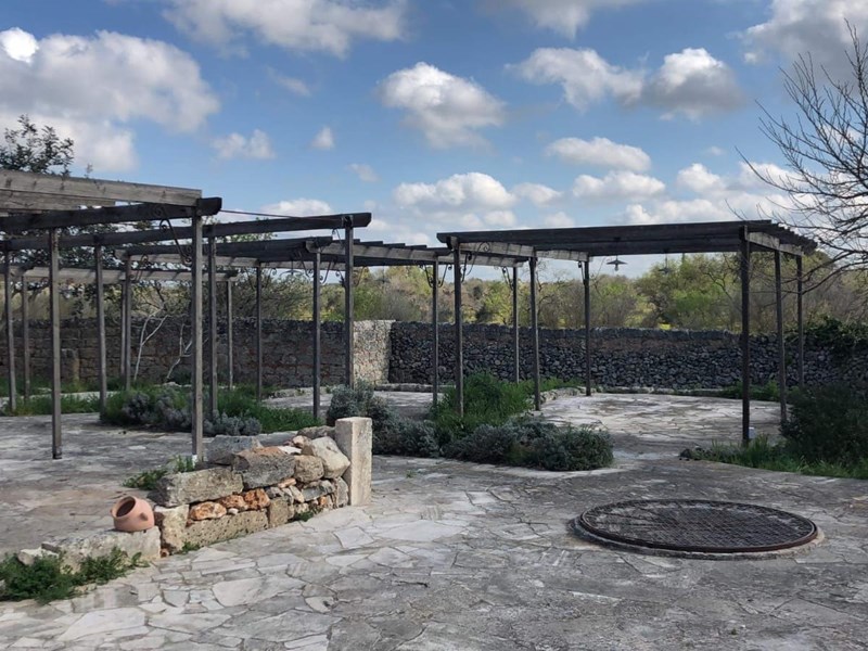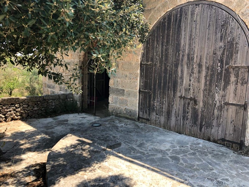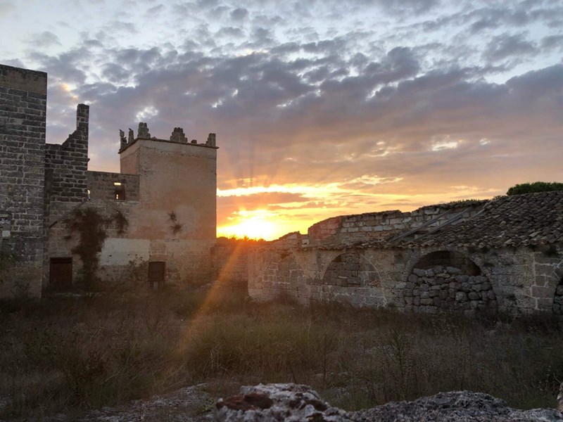 Porzione di storica masseria circondata da 6,5 ettari di giardino, di cui 1,2 pineta con Agricampeggio servito da 12 piazzole, 6 servizi, carico e scarico, 3,5 ettari di seminativo. La struttura principale a due piani e la Torre Colombaia a base quadrata sono databili nella prima metà del ‘700, mentre il resto del complesso edilizio si è sviluppato in epoche diverse. La masseria ha una superficie coperta di circa 390 mq, l’interno è stato ristrutturato mantenendo le caratteristiche dell’epoca ed esaltando la pregiata pietra dell’epoca utilizzata nella costruzione. Sono presenti 2 sale, cucine e bagni, e un’avviatissima attività di ristorazione. Nella parte del giardino ci sono gazebo, forno a legna e bagni esterni.