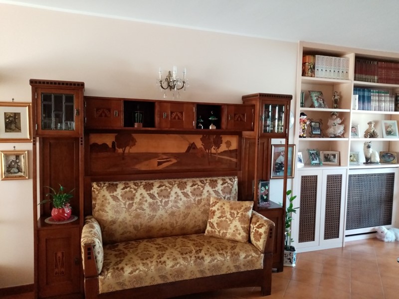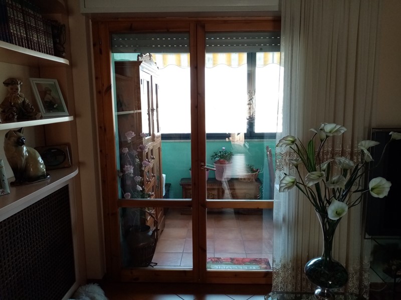 Appartamento mq. 85 composto da salone doppio con climatizzatore e terrazzo chiuso mq. 10 con camino, cucina abitabile con climatizzatore e terrazzo chiuso mq. 5, corridoio, 2 camere matrimoniali, 2 bagni (vasca e doccia) con finestre, possibilità studio.