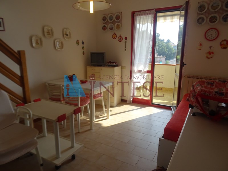 Rif. 53 BOISSANO trilocale in un complesso realizzato similmente a quello dei villini a schiera, e in posizione soleggiatissima con vista aperta e vista mare/monti, l’appartamento è posto al primo piano ed è composto da: ingresso, soggiorno con angolo cottura con un’ampia e profonda terrazza vivibile, camera matrimoniale con balconcino, bagno con finestrino, da una scala interna si accede ad un locale di sgombero adibito a mansarda dove troviamo una camera da letto ed un salottino, un bagno di servizio ed una terrazza vivibile, termoautonomo caldaia a gas (posta sul terrazzino), doppia esposizione sud/nord, box sotto il caseggiato.