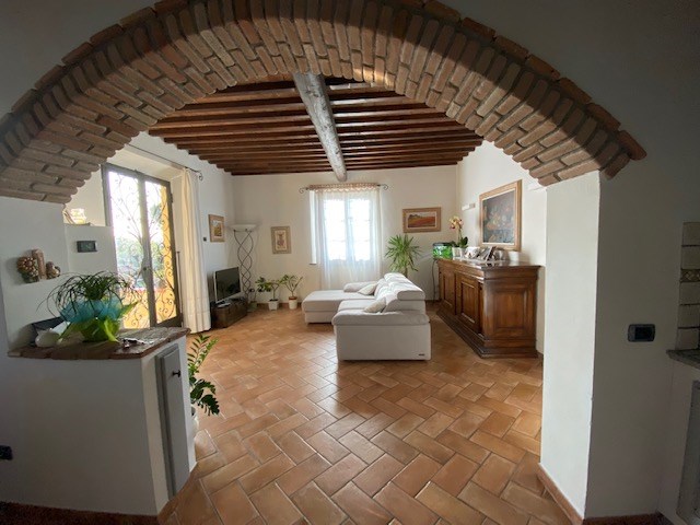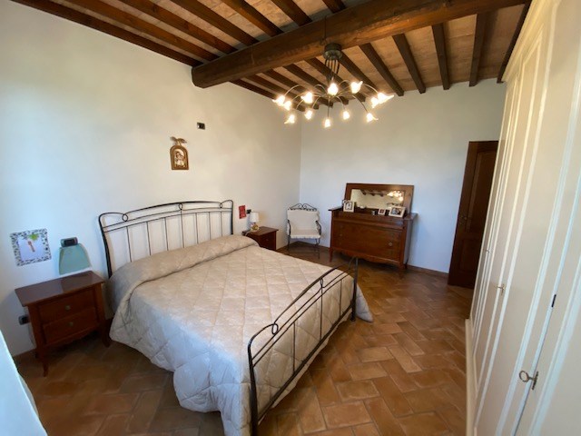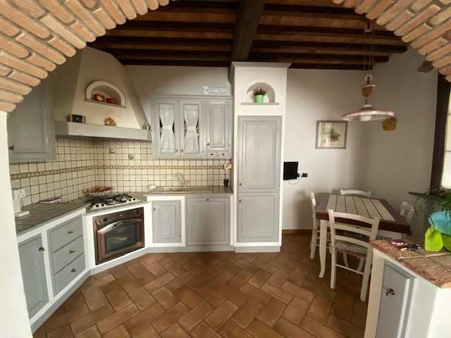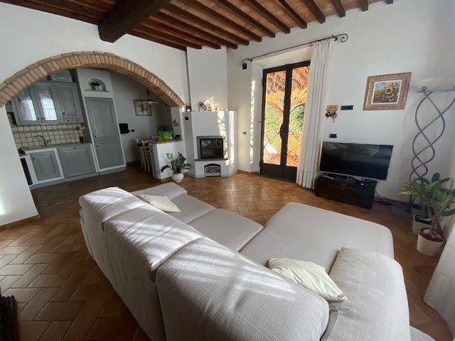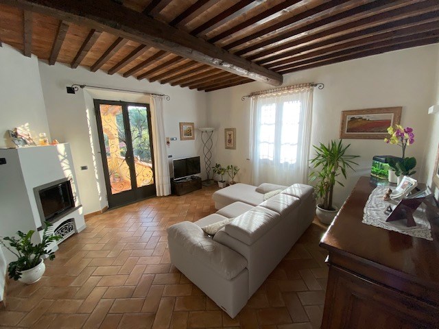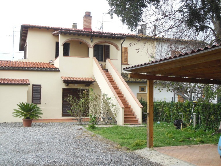 Vada, in campagna ma ad appena 3 km dal paese, in contesto rustico, disponibile appartamento al piano 1 totalmente e finemente ristrutturato. L'immobile ha un giardino di accesso privato di circa 50mq con due posti auto coperti, scale esclusive in cotto toscano, dalle quali si arriva ad una splendida terrazza coperta anch'essa rifinita con materiali rustici (circa 14 mq). Si accede direttamente nell'ampio open-space con angolo cottura a vista angolare, salotto con termo-camino a legna (riscaldamento e produzione acqua calda), successivamente nel disimpegno per la zona notte dove troviamo 2 ampie camere matrimoniali (17 e  19 mq), un ripostiglio e un grande bagno con box doccia. La casa ha rifiniture rustiche toscane come travi e mezzane antiche, archetti di mattoni alle finestre, porte in legno massello di castagno e si affaccia sulla campagna con vista mare. Riscaldamento tramite termocamino oppure tramite GPL (utilizzato per cucina e acqua calda in estate). Da vedere, come nuovo. Per altre foto e planimetria contattatemi.