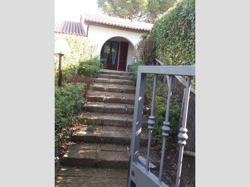 Un vialetto d'accesso conduce ad un ampio porticato che ci introduce al piano terra, composto da soggiorno (con divano letto), cucina a vista, disimpegno con angolo lavanderia, bagno e ampia camera da letto matrimoniale.