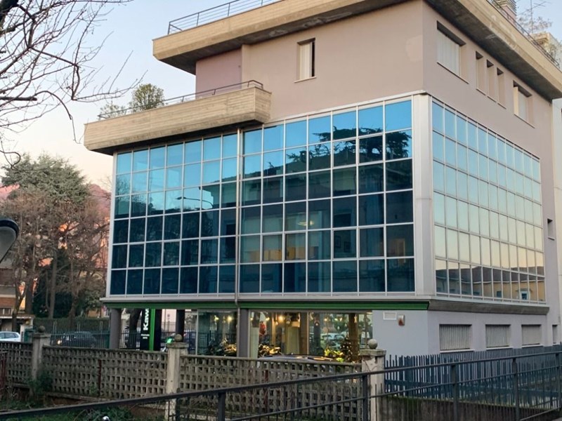 Studio privato al piano primo e secondo con tre autorimesse al piano interrato. Competono le proporzionali quote delle parti comuni.