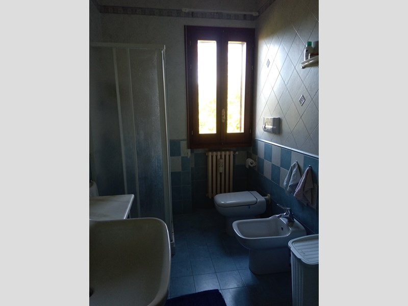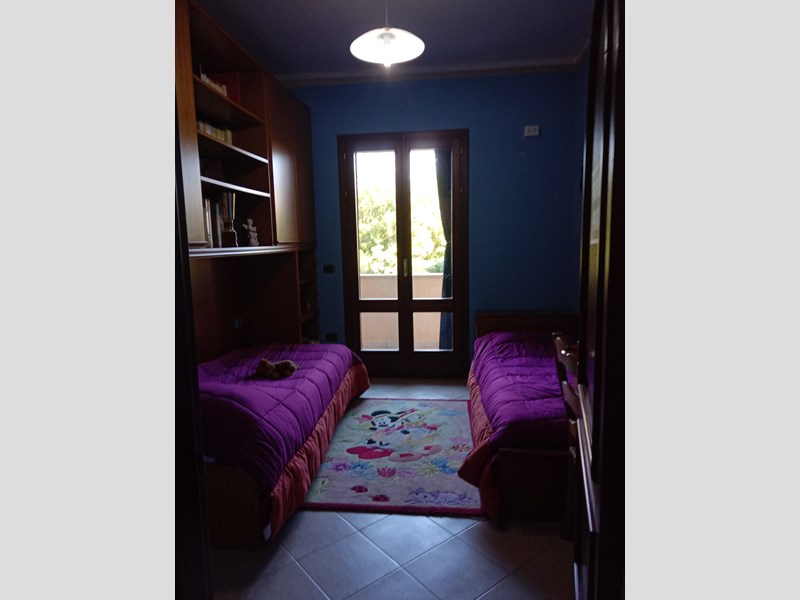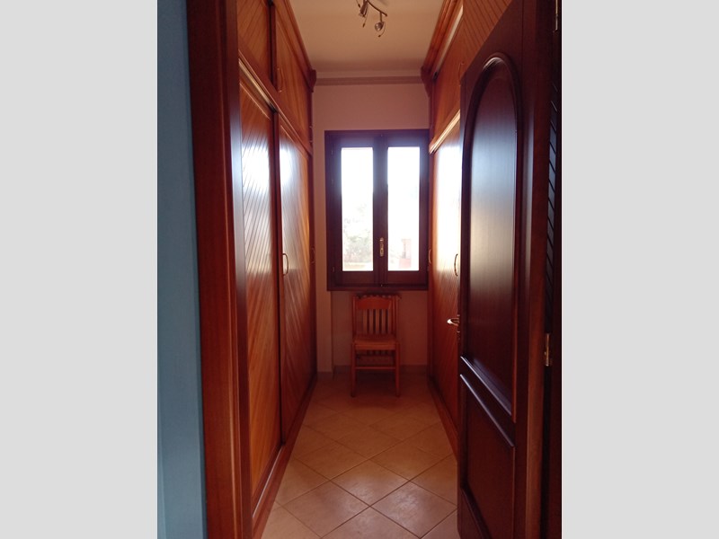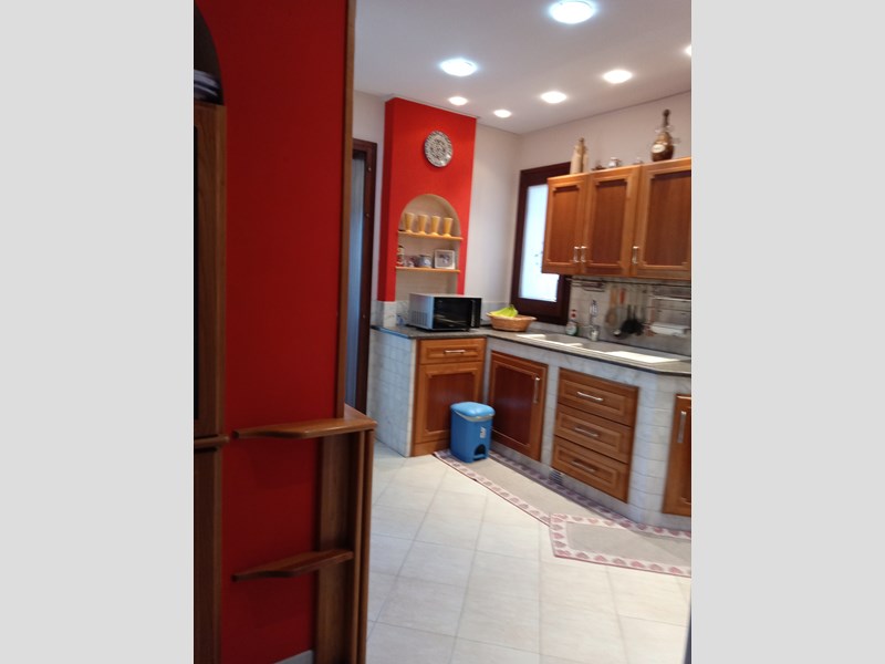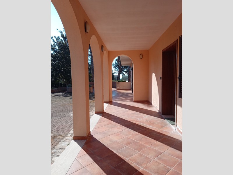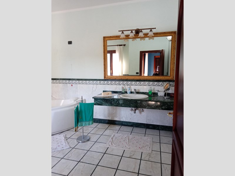 Si entra in un grande ingresso con la scala a vista che porta al secondo piano, dallo stesso si accede ad un salone, nel quale predomina un grande camino di marmo, con vista sul giardino anteriore, e poi nella sala da pranzo, caratterizzata da tre enormi vetrate, con vista sulla terrazza e il giardino posteriore, ci si sposta poi in cucina, tutta in muratura, granito e marmo. Vi è poi un corridoio sul quale si affacciano due stanze, il bagno, la lavanderia, e vi è l’uscita sulla terrazza. Al piano superiore troviamo altre due camere, un bagno e la suite padronale, che comprende una grande camera da letto, un grande bagno rivestito di marmo con vasca idromassaggio, e una cabina armadio. Nel piano seminterrato, si trova il grande garage, la luminosa tavernetta, il bagno e una cantina. Vi sono inoltre tre sottotetti da utilizzare come vani deposito. Gli infissi sono in legno massello di iroko fatti da un artigiano, cosi come la cucina e gli armadi che sono di ciliegio, i bagni e la cucina della tavernetta, ad eccezione delle vetrate della sala da pranzo che sono Schuco. Tutte le camere hanno l’uscita su un balcone. L’abitazione è provvista di impianto fotovoltaico da 3,99 KW, pannello solare per l’acqua calda, impianto d’allarme, persiane di ferro zincato.