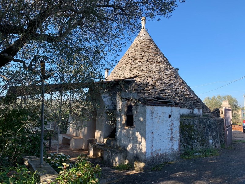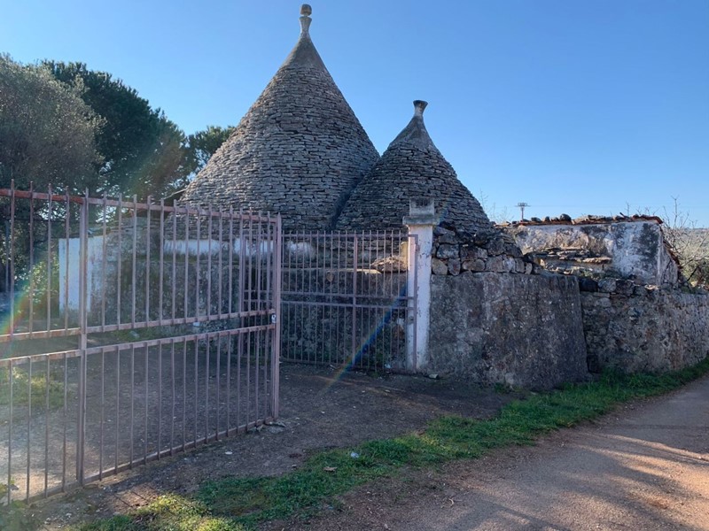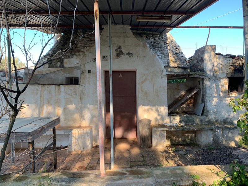Polignano a Mare, C.da Serraglia 990 (anno di costruzione 1800) Complesso a trulli di 50 mq al PT, composto da 2 coni, vano stalla, forno, piazzale in pietra, privi di servizi. Con 1 ettaro di terreno circa, accesso direttamente da strada asfaltata comunale, ma in zona isolata, terreno con alberi da frutta di vario tipo. Piazzale di 50 mq. Impianti non a norma, elettrico e idrico, cisterna, possibilità di allacc. pozzo art. Stato manut esterna media, interna da ristrutturare. Libero. € 69.000