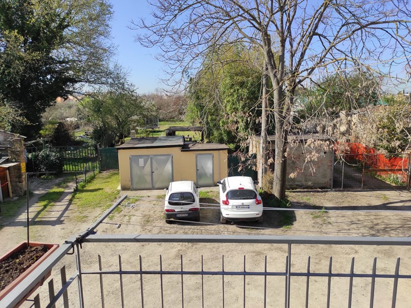 Il balcone esposto a mezzogiorno ha la tesa per il bucato ed è dotato di due luci, così come l’entrata. La casa si affaccia sulla corte interna dove vi è un posto auto.