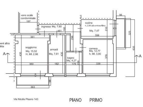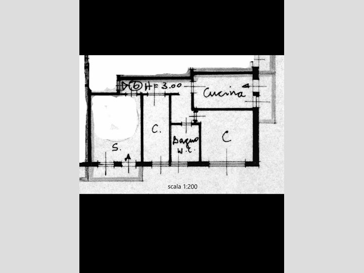 Composto da salotto, cucina abitabile, camera matrimoniale grande, camerina e bagno (quest'ultimo da ristrutturare il prezzo è già stato adeguato), grande armadio a muro adibito a ripostiglio.