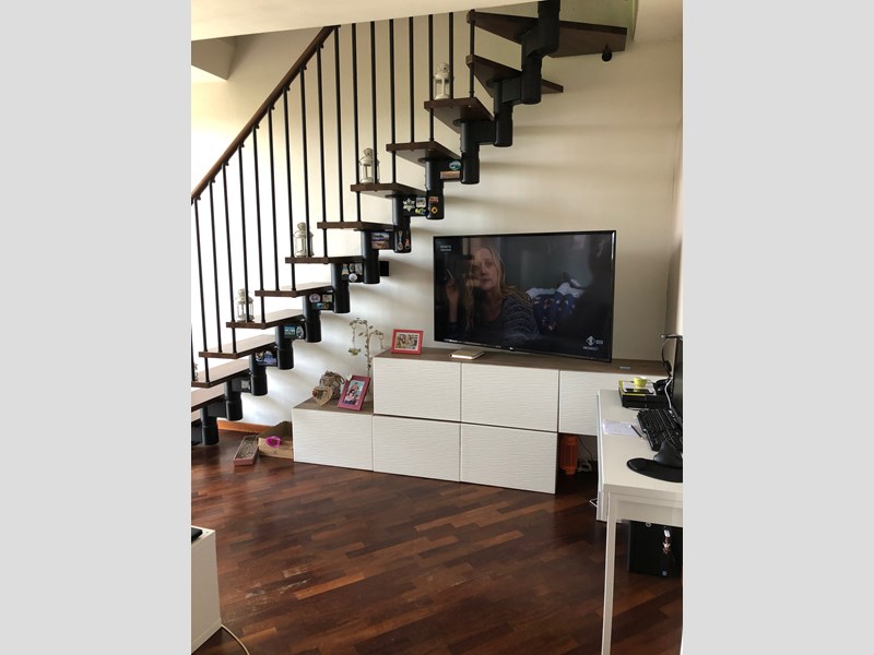 L’appartamento è composto al piano 2: cucina abitabile, salottino e bagno con doccia. Al piano 3: due camere spaziose (non mansardate), entrambe dotate di climatizzatore, e un bagno/lavanderia spazioso.