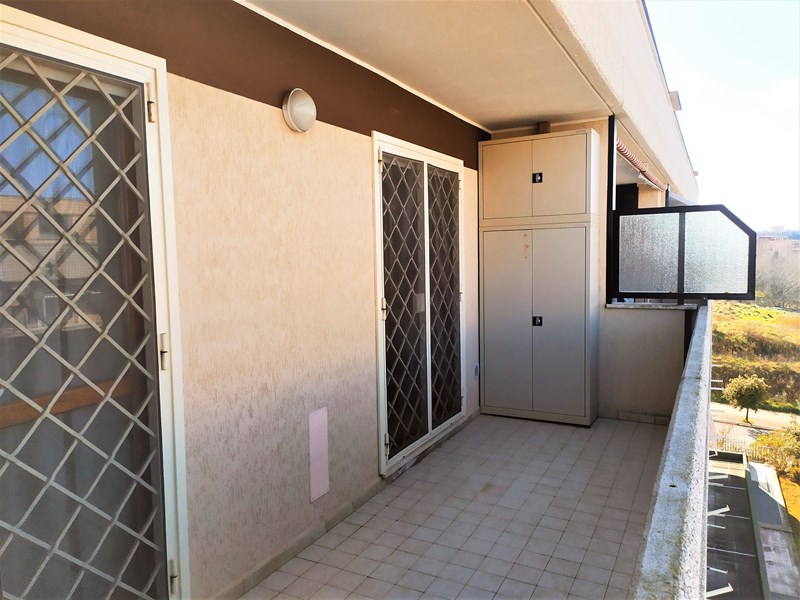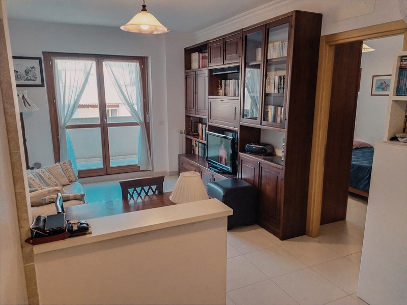 L'appartamento è composto da: soggiorno, ampia camera, angolo cottura con cucina su misura (praticamente nuova), bagno e terrazzo di 12 mq a servizio dell'intero appartamento. Tutte le finestre sono dotate di grate e zanzariere.
