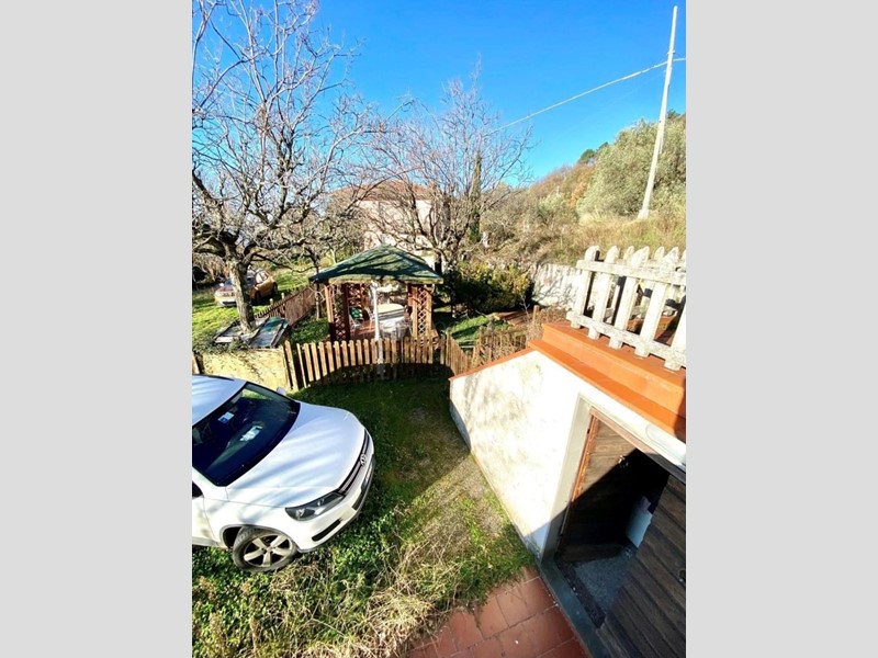 Il piano terra è composto da un'ampia zona pranzo dotata di camino e forno a legna, cucina abitabile e un bagno di servizio. Al piano superiore è presente una luminosa zona giorno, camera matrimoniale, bagno ed una terrazza di circa 40 mq. A completare la proprietà una cantina e terreno ricco di ulivi ed alberi da frutto.
