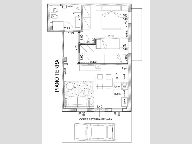 Appartamento trilocale con 4 posti letto, situato al piano terra completamente ristrutturato. A 50 metri dal centro e dal mare. Libero Giugno e Primi 15 giorni di Luglio.