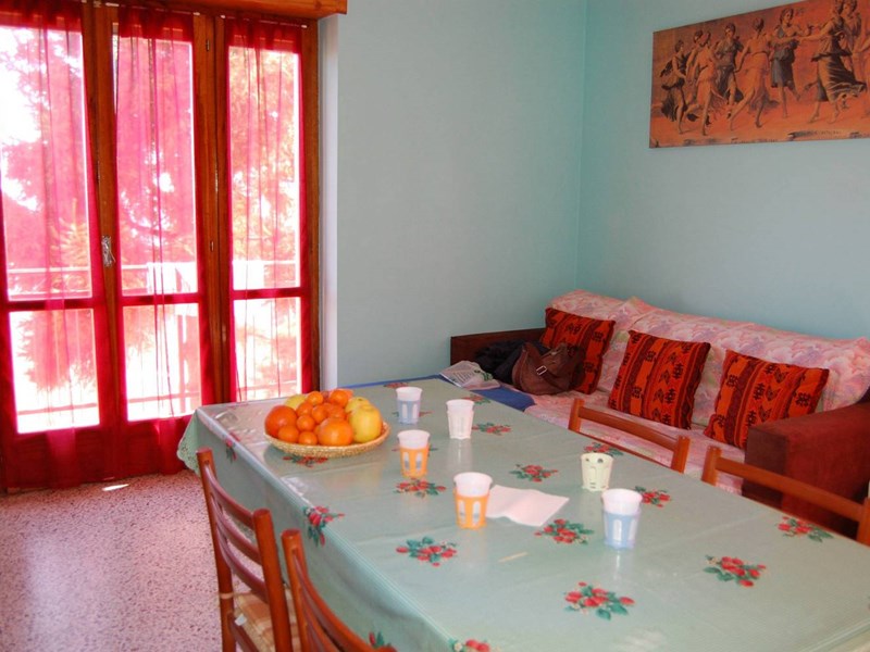Primo piano: cucina, soggiorno con pavimento in graniglia e due grandi balconi.