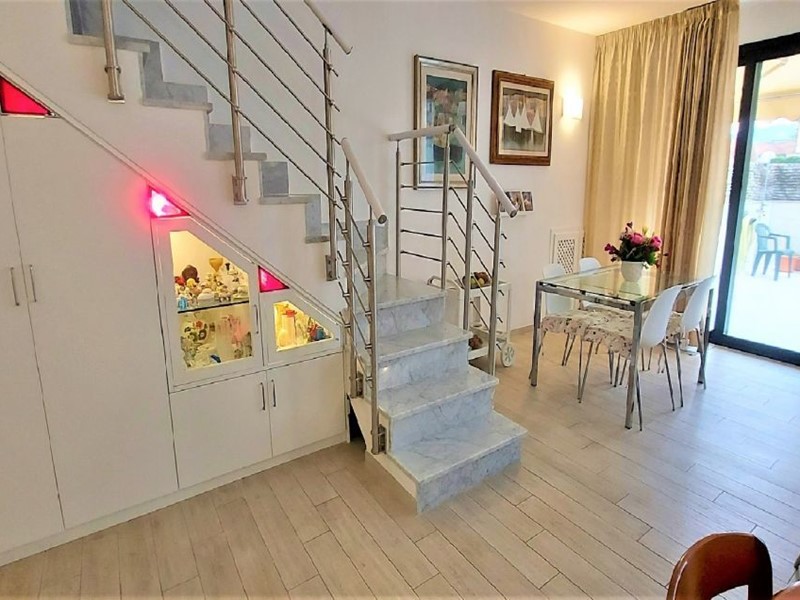 Al secondo piano mansardato, ulteriori due camere con lucernai elettrici, e servizio con doccia, oltre ad un meraviglioso terrazzo vivibile con vista mare. L'appartamento è termoautonomo e dotato di climatizzatori e videocitofono.