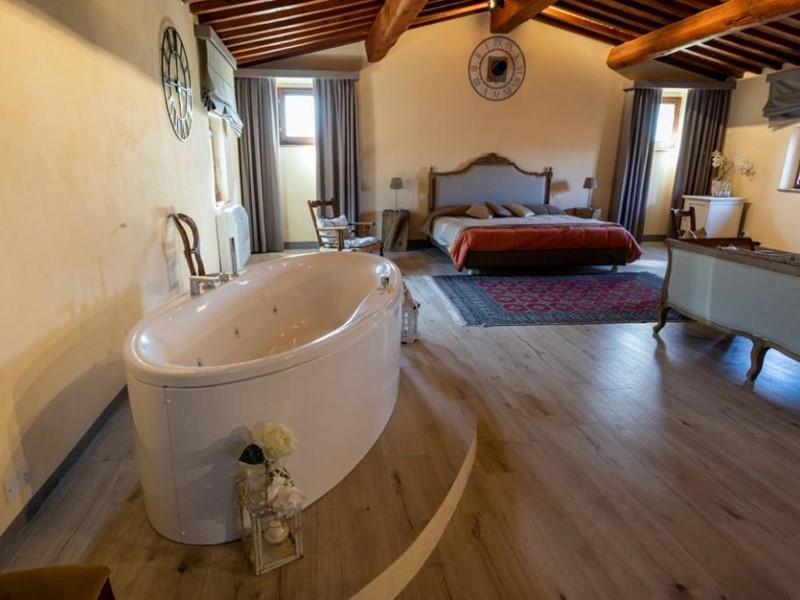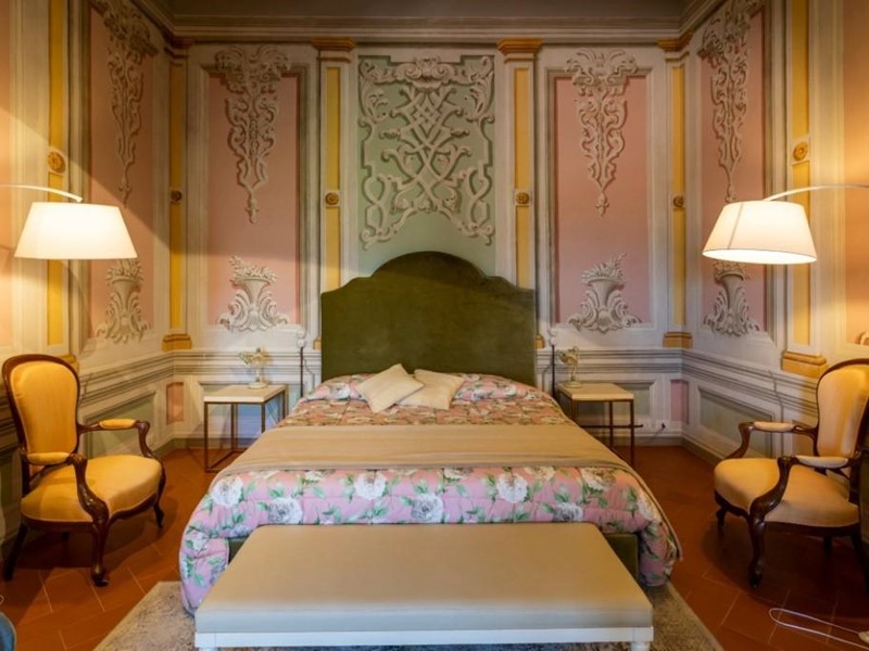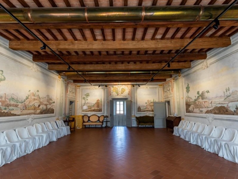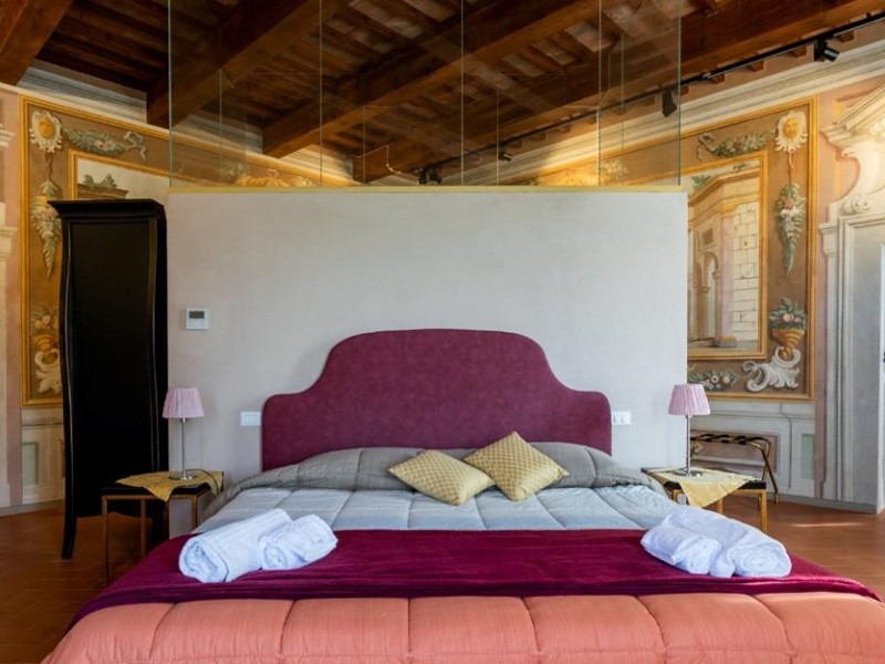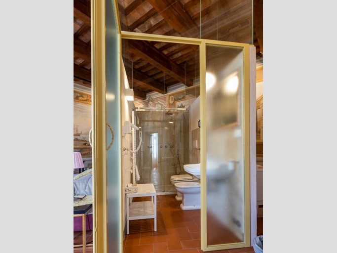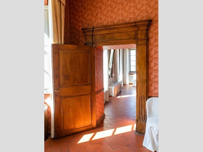 Internamente la proprietà servita da ascensore è costituita nel suo complesso da 4 saloni principali di oltre 80 mq. che si ripropongono ogni piano con la suggestiva camera suite al livello 3 dell’ex granaio con il soffitto che riporta le possenti capriate a vista, ulteriori 4 sale ai piani terra e primo, due cucine di cui una molto grande e professionale, 8 camere, 15 bagni e vari ambienti accessori completano la parte interna.