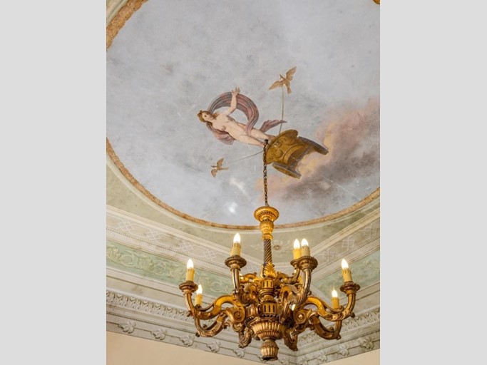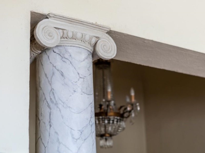 Il restauro, completato dopo circa 20 anni ha portato alla luce delle massicce colonne doriche e affreschi di pittori importanti di quel periodo, le scene più rappresentative sono scene di vita quotidiana, paesaggi selvaggi e elementi tratti dai reperti iconografici del cosiddetto rovinismo.