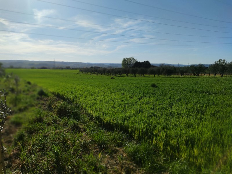 Adiacente l'Oasi WWF di Alviano (TR), terreno pianeggiante con ulivi/ seminativo e 200mq di capannoni. Possibilità di convertire/ costruire abitazioni fino a 220mq.
