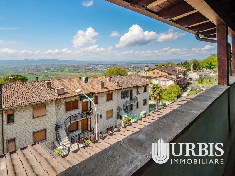 Nella zona residenziale di Assisi, cielo – terra di 275 mq facente parte di una schiera di villette degli anni 80 completamente rivestita in pietra bianca del Subasio. La superficie è distribuita su più livelli suddivisi in ampio ingresso, un grande soggiorno, una cucina con camino con affaccio su un cortile e due bagni al primo piano mentre il secondo piano è adibito a zona notte con 4 camere da letto, ognuna con rispettivo bagno, di cui tre con terrazzo. A completare la proprietà un ultimo piano con un terrazzo di 30 mq che si apre verso valle, oltre a due garage al piano terra. Possibilità di divisione per due nuclei familiari.