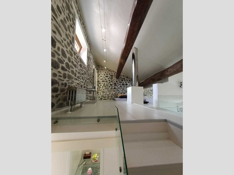 In the beating heart of Pontremoli’s historic town center, where medieval alleys whisper stories of centuries past and time slows down, we offer for sale a truly charming and refined penthouse, masterfully restored and located on the top floor of a beautiful period building. With its stunning rooftop views, this residence offers an immersive experience into the soul of Lunigiana’s historic heritage. Spanning approximately 110 sqm, the penthouse harmoniously blends authentic architectural features such as original exposed beams and stone walls with modern elegance and bespoke detailing. Interior highlights include whitewashed oak flooring, chestnut wood double-glazed windows, mirror-finish Venetian plaster, and an inviting atmosphere that speaks of comfort and style. The open plan living space features a spacious lounge area with home cinema projector, a fully equipped kitchen, and a serene ambiance ideal for entertaining or relaxing. The two bedrooms include one small on the main floor with a custom-built bookcase and another on the mezzanine with a private walk-in closet. The bathroom is refined and contemporary, with floating sanitary ware, a stone sink, and a large, stylish shower. Additional features include a Wi-Fi sound system, design radiators, a fireplace, and a built-in safe. A rare and valuable asset of this property is the absence of balconies, offering maximum privacy, clean architectural lines in keeping with the historic façade, and enhanced energy efficiency and security making every window a living portrait of the city below, free from visual clutter or external exposure. This is a unique opportunity for those seeking to reside in or invest in one of Tuscany’s most authentic and culturally rich destinations. Pontremoli, with its noble palaces, literary traditions, Romanesque churches, and majestic landscapes, offers the charm of a medieval town alive with festivals, food, and art, all within easy reach of the Ligurian coast, the Cinque Terre, Parma, and major transit routes. Whether as a primary residence, a luxurious second home, or a premium holiday rental, this penthouse is a poetic haven and a secure investment in a place where history meets modern elegance.