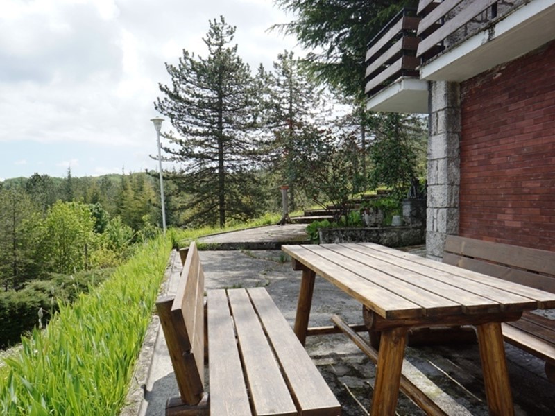 ASCOLI PICENO - colle San Marco e San Giacomo - villa in montagna di circa 200 mq coperti immersa in un parco privato di 3000 mq, ammobiliata. Dispone di 5 camere, cucina abitabile, soggiorno, salotto, due bagni, due soffitte, deposito, garage, due grandi terrazze panoramiche per un totale di 50 mq. Ha finiture dell'epoca di costruzione ma condizioni generali buone, è immediatamente abitabile e attualmente adibita ad attività di B&B. Sono in corso lavori di ottimizzazione dei servizi interni ed esterni ovvero cappotto termico, impianto fotovoltaico, bagni e docce esterni, piazzole per tende. Rif. 5000 DiLeoImmobiliare