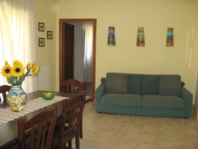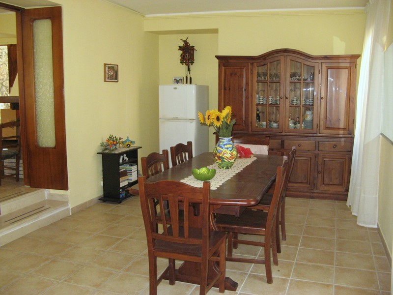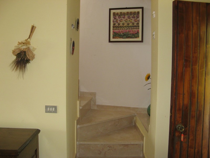 L’Abitazione principale è al piano primo e secondo, raggiungibili con una breve rampa di scale dalla corte esterna, entrando ci si trova in un’ampia cucina abitabile totalmente attrezzata e con camino angolare cui segue una sala da pranzo/soggiorno con divano letto e quindi una camera da letto matrimoniale impreziosita dal soffitto in legno. Allo stesso livello è presente un comodo bagno con vasca. Salendo una scala interna in muratura con gradini rivestiti in marmo si raggiunge il secondo piano dove, oltre un bagno con doccia, si incontrano altre due camere da letto matrimoniali con il tetto di legno a vista e che alloggiano anche due letti a castello. Dal primo piano è possibile uscire all’esterno nel cortile privato posteriore che immette anche in gradevoli giardinetti terrazzati e panoramici.