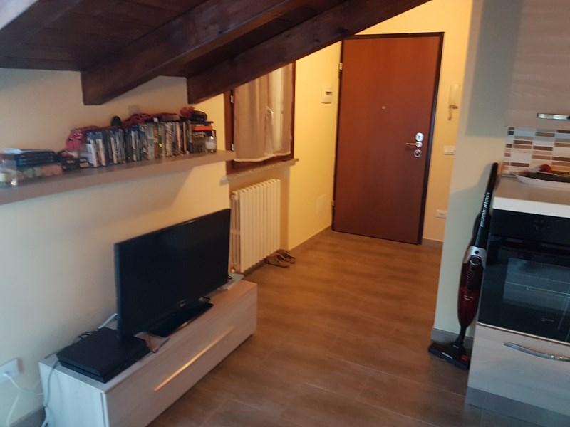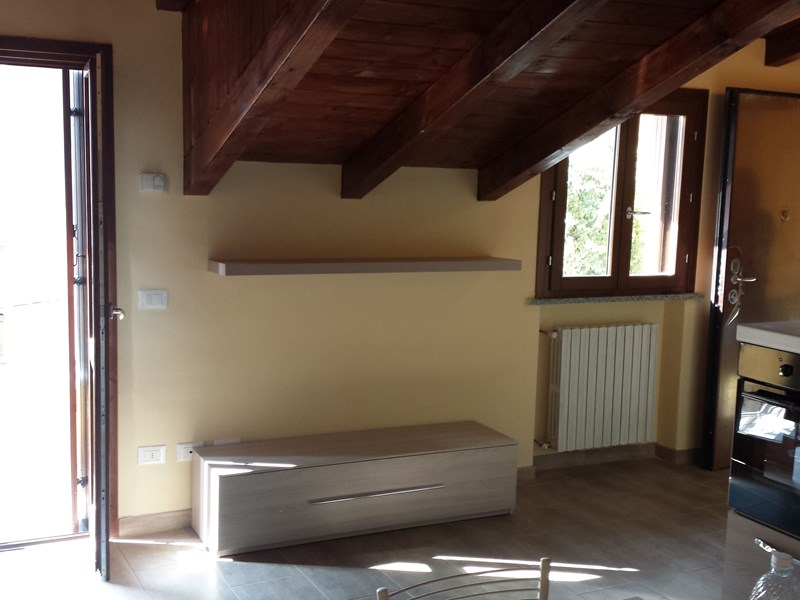 In condominio recente, al secondo piano mansardato con travia vista, ampio monolocale arredato a 5 minuti dalla stazione.