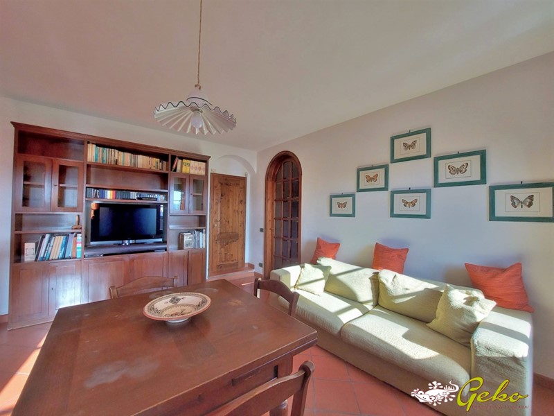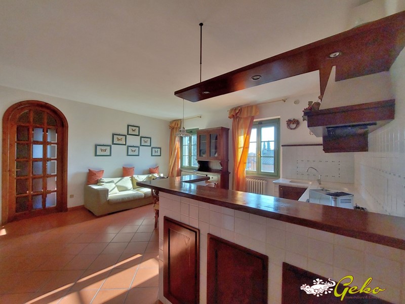 Incantevole appartamento posto d 1 km dal centro storico di San Gimignano, facile da raggiungere anche a piedi oppure con i mezzi pubblici con la fermata a pochi passi, posto in un piccolo borgo collinare con affaccio sulla meravigliosa campagna che circonda San Gimignano , ristrutturato completamente nella metà anni '90. \n\nOggi abbiamo un gradevole appartamento posto al piano primo in una colonica , con ingesso condiviso a due unità, con il piccolo resede privato antistante l' ingresso è un angolo di relax ed luogo ideale per trascorrere del tempo all' aperto in piena tranquillità . \n\nLa casa dispone di ampia cucina in muratura con salotto, caratterizzato da due finestre in legno che danno una particolare luminosità alla stanza, un ripostiglio con accesso alla soffitta sotto tetto, due ampie camere , di cui una dotata di doppia finestra con scorcio sulle torri di San Gimignano e sulla campagna che donano a questo locale l' atmosfera di un dipinto, il bagno finestrato con doccia , garage di oltre 20 mq . La casa si presenta con finiture dal carattere moderno , dotata di tutti i comfort . \nIl Borgo è totalmente recintato e si accede mediante cancello automatizzato , oltre al garage dispone di ampio parcheggio ed un posto auto assegnato . \n\n Il borgo è avvalorato da un parco di olivi e dalla piscina posta al centro di una incantevole aia a mattoni, è un angolo dove trovare serenità sia per la vita di una famiglia residente oppure per trascorrere le proprie vacanze ; in effetti questa abitazione è un investimento ottimale sia per uso abitativo oppure come seconda casa . \nIl borgo è abitato da 5 famiglie con una gestione contenuta delle spese comuni , è un luogo ideale dove vivere vicino a tutte le comodità del paese ma nella totale tranquillità a due passi da tutto . \n\nPer maggiori informazioni puoi contattarci qui:\n\nwww.gekoimmobiliare.com - info@gekoimmobiliare.com\nCell. 331 2222793 - 3315805031 0577 891135 \n\n - Maggiori Dettagli: Porta blindata, Cucina Abitabile