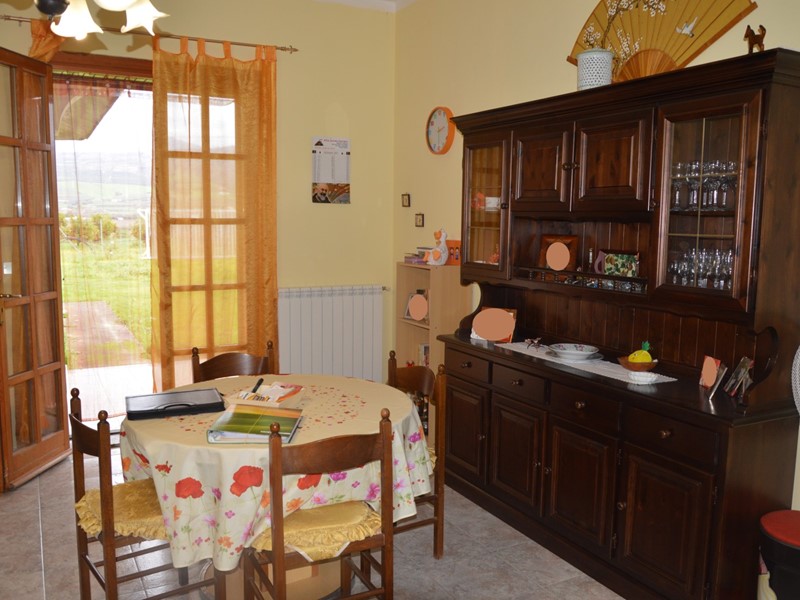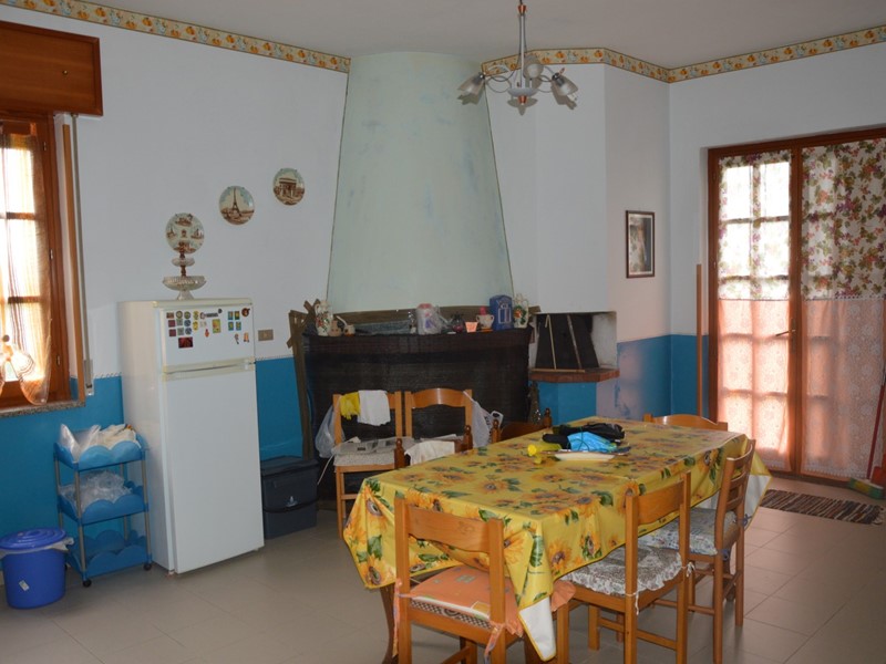 1) Piano terra, accessibile da un grazioso portico, con ampio soggiorno fornito di termocamino a legna, comoda cucina abitabile dotata di camino e forno a legna, un bagno ed un ripostiglio: