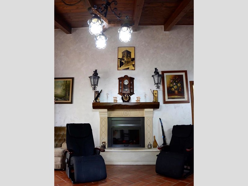 - L'abitazione principale si sviluppa su un unico livello ed è composta da: soggiorno con termocamino, cucina abitabile, sala pranzo, 3 camere, 1 bagno, garage, soffitta;