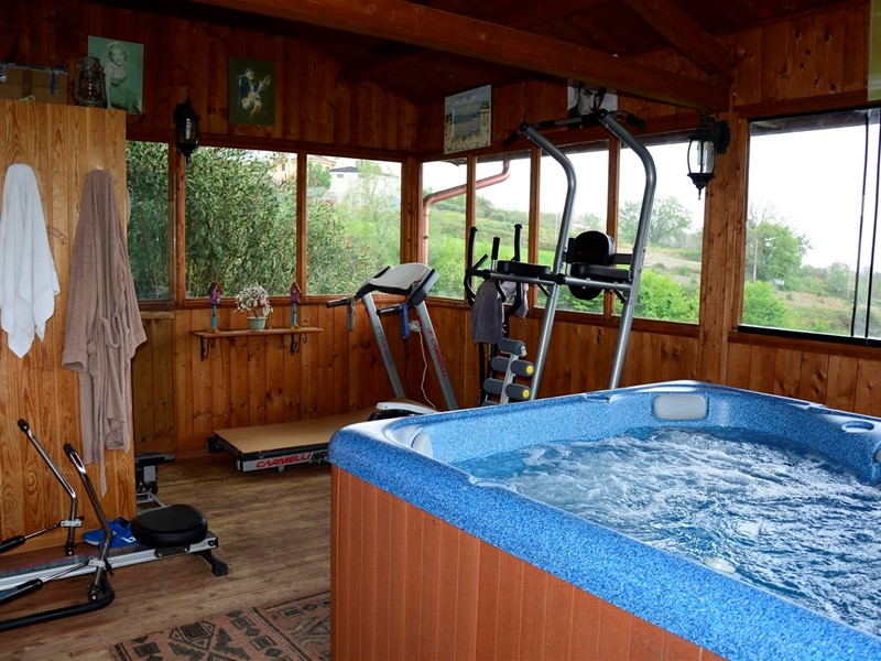 - Un'ampia corte con prato inglese, estremamente curato, su cui troviamo un locale con forno e barbecue ed un ulteriore locale relax con vasca idromassaggio, palestra e sauna;