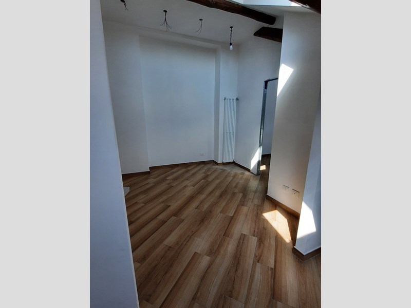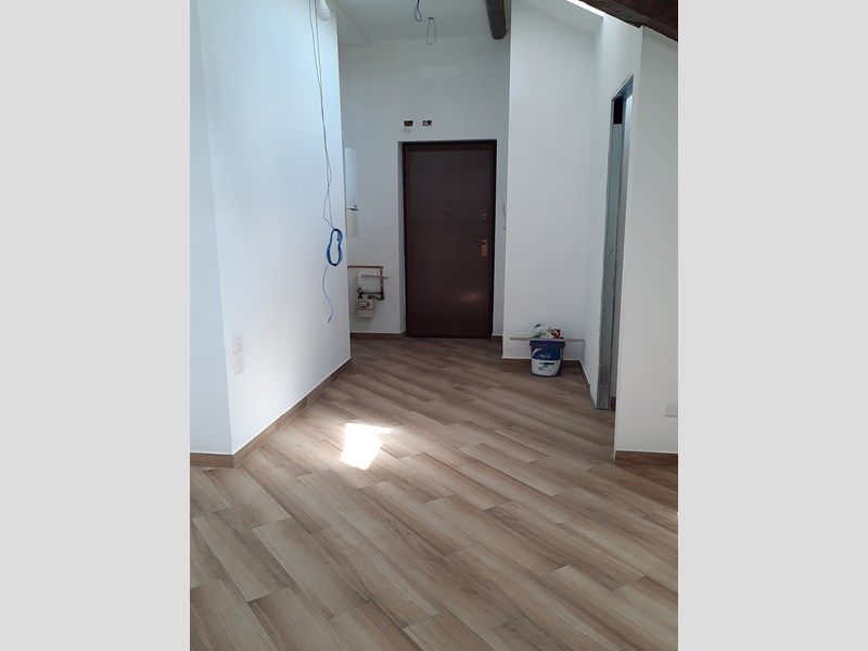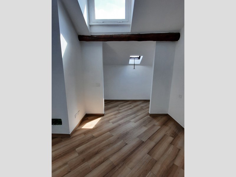 L'appartamento è composto da ingresso, soggiorno con cucina a vista, camera da letto con cabina armadio, bagno, balcone e solaio.