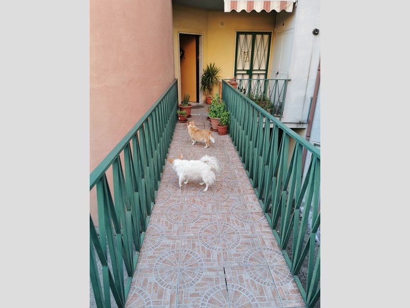 Al piano terra ampio soggiorno con balcone di circa 60 mq con annessa cucina di circa 8 mq con annesso balcone.