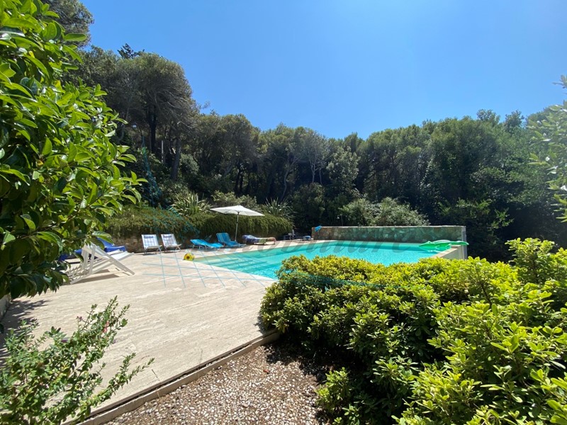 Immersa nella riservata pineta di Quercianella, a pochi minuti a piedi di distanza dal mare, si trova questa villa di lusso in vendita con eccezionale vista mare.