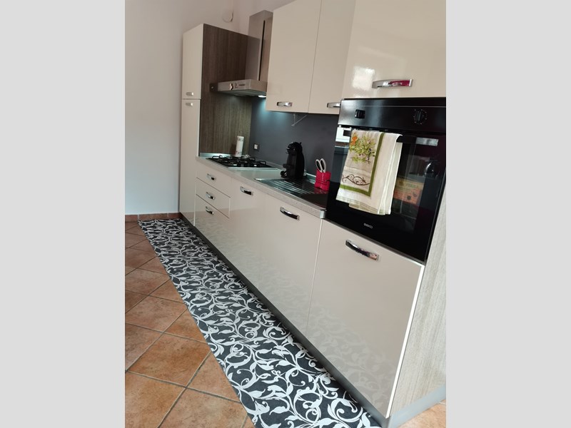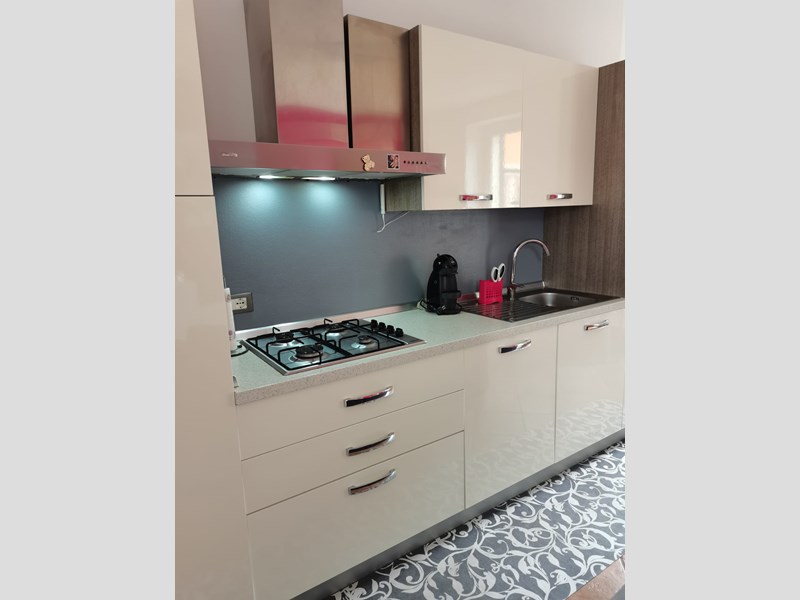 Soggiorno con cucina accessoriata,atrio con ingresso camera matrimoniale arredata con uscita sul balcone,bagno con lavatrice,videocitofono,ripostiglio e posto auto con cancello automatico.