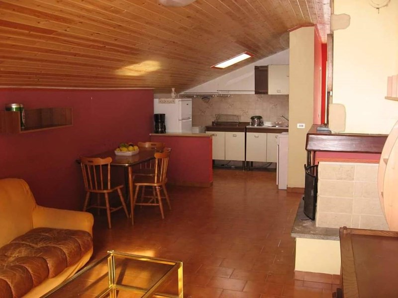 La mansarda è composta da ingresso, bagno, angolo cottura, soggiorno con caminetto o stufa a pellet e camera matrimoniale.