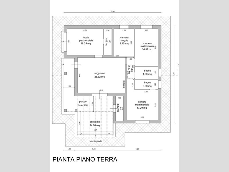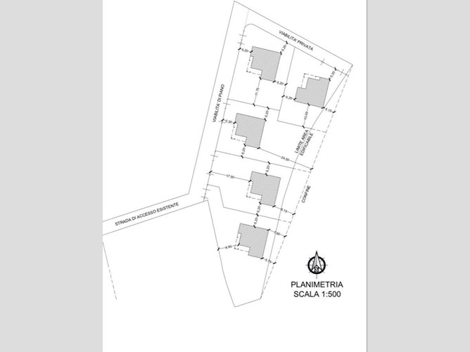Piano di Conca, in complesso di di cinque unità immobiliari indipendenti di nuova realizzazione disposte su unico livello, composte da ampio soggiorno d'ingresso, cucina abitabile, dispensa, disimpegno, tre camere matrimoniali, doppi servizi, porticati e pergolati per mq.35. A corredo mansarda di mq.45, e giardini su quattro lati da mq.500 a mq.750. Rifiniture di livello (riscaldamento a pavimento, pannelli solari ecc).