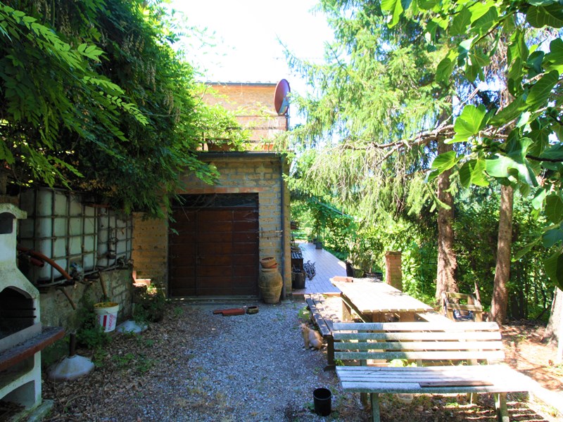 Il resede che circonda in parte l’edificio, attualmente è utilizzato come zona relax con tavolo in legno e in parte come giardino con pergolato a vite.