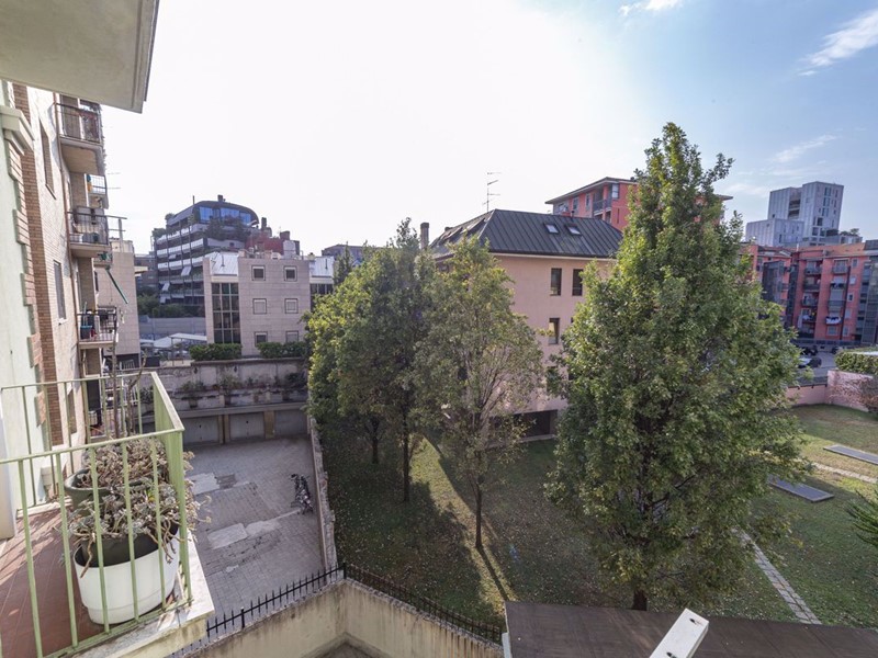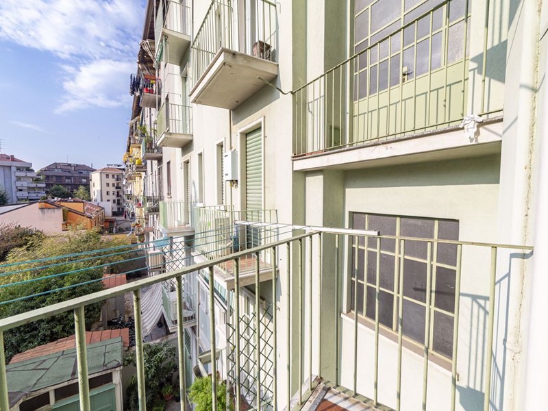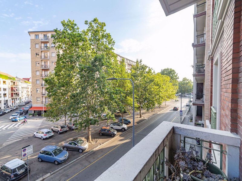 Ingresso su ampio disimpegno dove è stata ricavata una parete sgabuzzino e da cui parte un lungo corridoio che divide l'appartamento, sulla sinistra troviamo il luminosissimo soggiorno doppio dotato balcone che affaccia su Via Osoppo e due ampie finestre, proseguendo troviamo la camera da letto matrimoniale e frontalmente, alla fine del corridoio, il bagno padronale finestrato con box doccia.