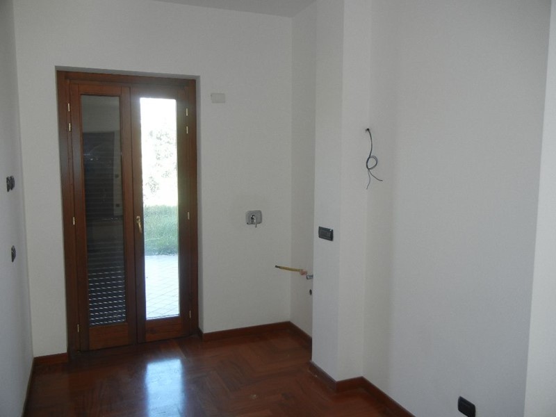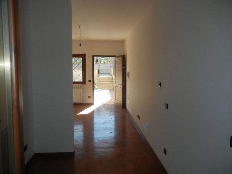 Nuova costruzione - mai abitata, via delle Calcare, disponiamo di ULTIMO villino a schiera, porzione centrale, di mq 150 disposto su 3 livelli, composto da: p.s. sala hobby con ang. cottura e camino, bagno e box; p.t. soggiorno con cucinotto a vista, cameretta, bagno e giardino di mq 70 circa diviso tra avanti e dietro; p.1° disimpegno, grande camera matrimoniale con travi in legno a faccia vista e balcone, cameretta e bagno. Ottime rifiniture, dotate di infissi in legno con vetrocamera, inferiate, portone blindato, videocitofono, vasca idromassaggio, parquet nelle camere, scale in marmo. Possibilità, grazie all'attuazione del piano casa, di realizzare ulteriori 12 mq al piano terra. Ottima esposizione