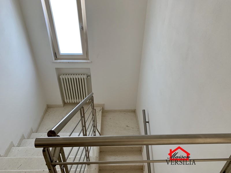 Forte dei Marmi, si propone in vendita, in frazione Vittoria Apuana, a meno di 200 metri dal mare e non lontana dal centro di Forte dei Marmi, bellissima porzione di villa bifamiliare, finemente ristrutturata, disposta su due livelli abitativi. Al piano terra si trova l'ampio soggiorno, la cucina abitabile, il bagno con doccia; al piano primo 3 camere matrimoniali di cui una con vasca idromassaggio, le altre due godono di affaccio su terrazzino balconata. A corredo aria condizionata nelle camere e nel disimpegno a piano terra, giardino, 2 posti auto, cassetta di sicurezza, allarme, wifi, Sky tv.\nResede esterna di circa 25 mq in corrispondenza dell'ingresso pedonale.\n\n - Maggiori Dettagli: Porta blindata, aria condizionata, Camino, Cassaforte