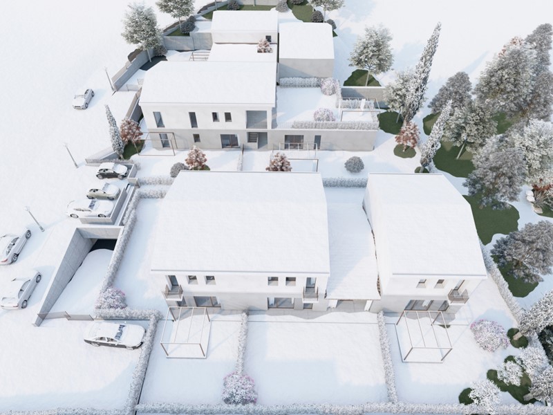 Tutte le unità saranno dotate di cucina/soggiorno in open space con metrature tra i 35/45 mtq, tre camere, doppi servizi e garage doppio con giardino o ampio terrazzo.