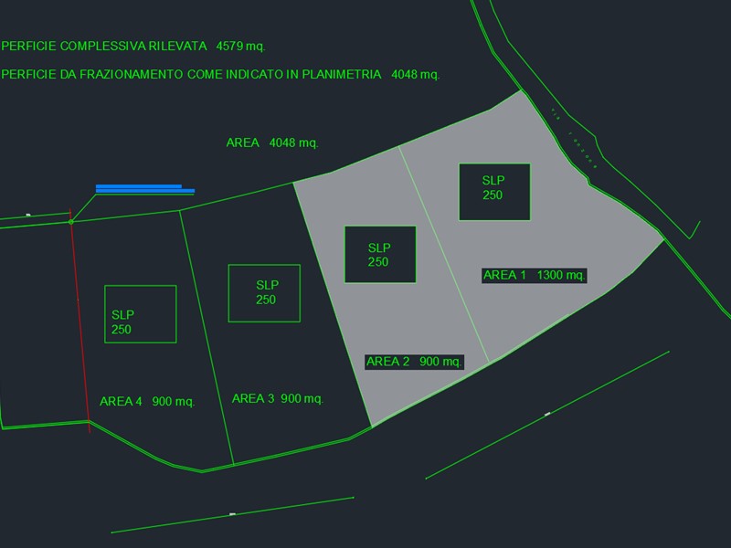 L'indice di edificabilità prevede la possibilità di edificare circa 1.000 mq di SLP suddivisibili in più lotti.