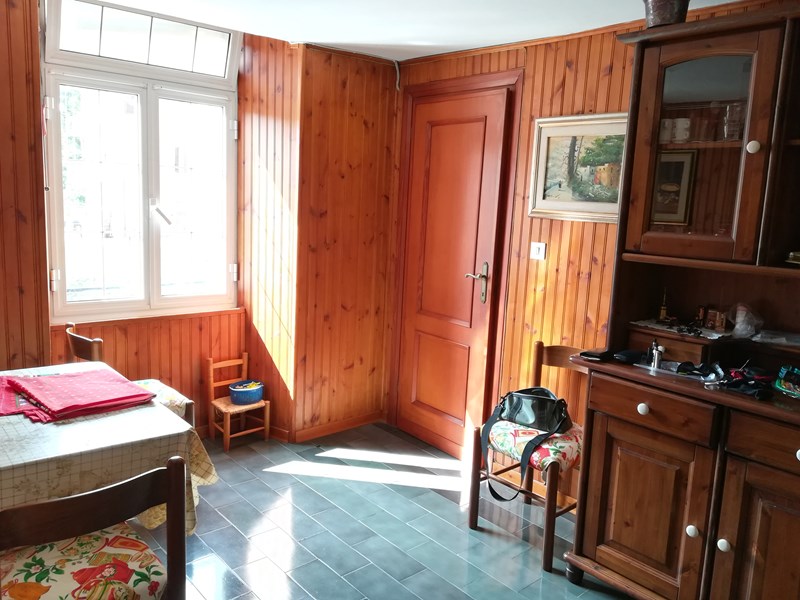 Situato al primo piano (pochi scalini di accesso) e composto da corridoio di ingresso su cui si affaccia un piccolo vano adatto per studio/salottino o camera per bambini; segue soggiorno con angolo cottura. Dal soggiorno accesso a grande camera matrimoniale e, sul lato opposto, a stanza da bagno e disimpegno "antibagno". Termoautonomo con caldaia a metano e grandi termosifoni. Pavimenti e soffitti rifatti, a norma. Finestre in alluminio bianche, persiane in ottime condizioni e porte interne in legno pregiato.