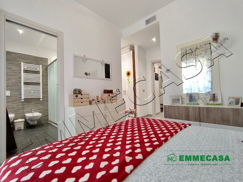 Valenzano, nei pressi dei carabinieri proponiamo in vendita ampio quadrivani.\nL'appartamento, ubicato al primo piano in stabile servito da ascensore, copre una superficie complessiva di 127 mq e si compone, al suo interno, di ingresso su disimpegno che conduce all'ampia zona living con angolo cottura, lavanderia e studio. \nDalla zona giorno attraverso il corridoio, si giunge alla suite matrimoniale completa di cabina armadio e bagno, alla cameretta ed al secondo servizio e ripostiglio.\nL'immobile è stato oggetto, nel 2016, di una totale ed accurata ristrutturazione che lo ha reso una dimora di alto livello sia in termini di rifiniture ed accorgimenti che in termini tecnologici.\nA tale proposito, sottolineiamo alcune rifiniture come la presenza di porta blindata e predisposizione dell'impianto di allarme, infissi in vetrocamera in classe A con apertura a vasistas e microcircolazione, avvolgibili elettrici, zanzariere, cancellate di protezione e tende da sole. \nLe porte interne sono a scrigno, ogni stanza è provvista di presa TV ed ethernet 1Gbit/s, il pavimento è in gres effetto legno, anche sui balconi, ed in tutta la casa sono presenti i termo arredi.\nPer quanto concerne l'impiantistica, questa soluzione è dotata di un sistema canalizzato di climatizzazione freddo/caldo di 24000 BTU per la zona giorno e 16000 BTU nella zona notte con la possibilità, per quest'ultima, di regolare autonomamente la temperatura per ogni camera. \nLa caldaia, con serbatoio di accumulo 20 Lt, ha termostato intelligente ed impianto di ricircolo acqua sanitaria che permette l'arrivo dell'acqua calda ai rubinetti immediatamente evitando inutili sprechi.\nInoltre, gli impianti idrici sono a collettore (è possibile chiudere singolarmente il punto acqua senza chiudere il contatore generale) e le docce sono dotate di rubinetteria termostatica ovvero impostano direttamente la temperatura senza che sia necessario miscelare manualmente il quantitativo di acqua calda/fredda. \nL'immobile è inoltre completo di due balconi di 19 mq complessivi e box auto di 16 mq.\nOltre a quanto descritto, altre caratteristiche contraddistinguono questo delizioso appartamento, ma preferiamo mostrarvele direttamente dal vivo! and euro; 195.000\n - Maggiori Dettagli: Zanzariere, Porta blindata, Infissi in vetrocamera, Tende da sole, Grate di protezione, Impianto di allarme, Climatizzatore