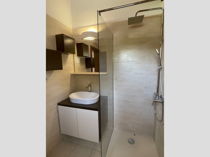 Le scale in legno, portano al primo piano, dove troviamo 2 grandi camere da letto con uscita sul terrazzo e un ulteriore bagno, con vasca idromassaggio. La casa e’ provvista di riscaldamento a pavimento nel pianoterra, mentre al primo piano, le camere sono provviste di climatizzatori.