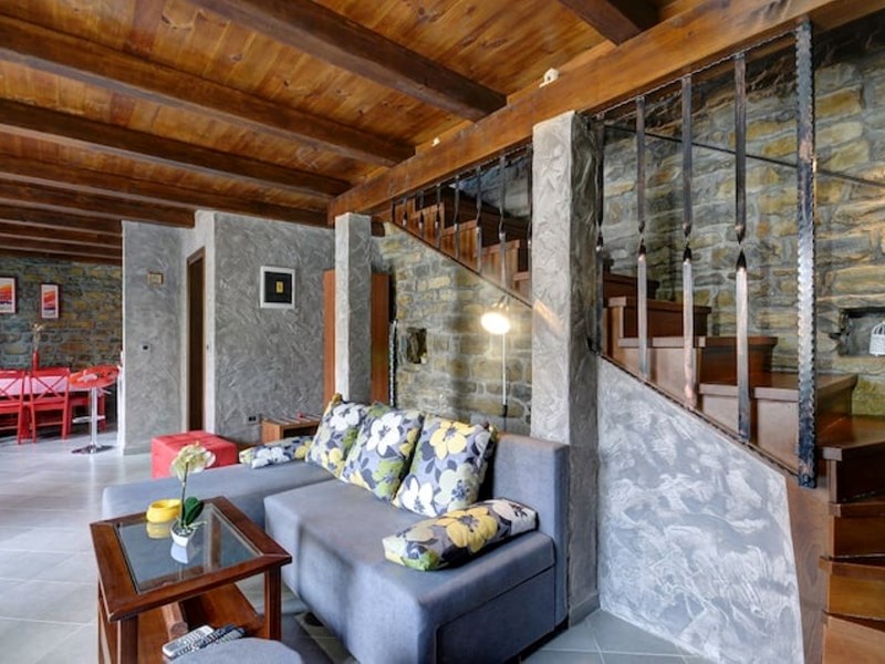 Sviluppata su 2 piani; al piano terra si trova il soggiorno, la cucina e un bagno. Le scale in legno, portano al primo piano, dove troviamo un’ulteriore bagno e 2 camere da letto con balcone, che offre una vista spettacolare sul verde e il mare sullo sfondo.