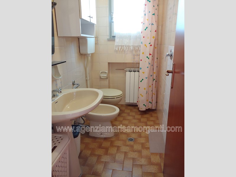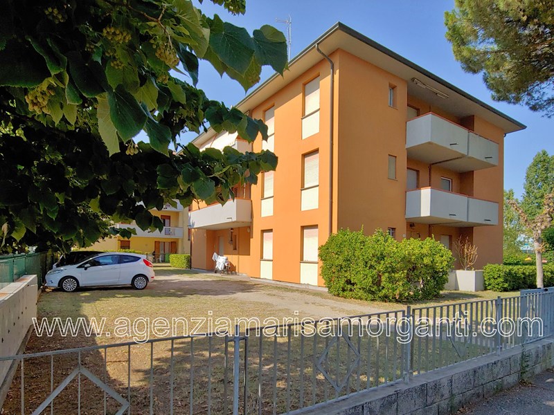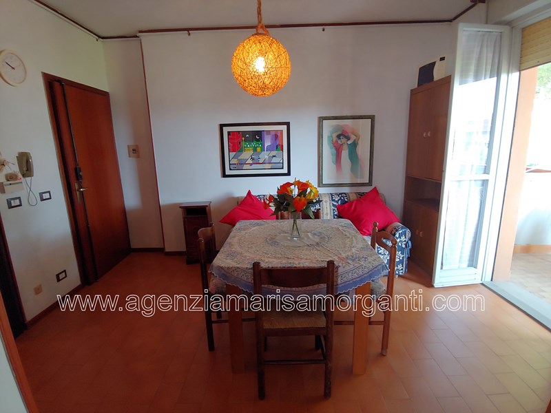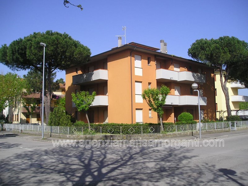 Rif. B221 Lido Adriano, Ravenna, a 100 metri dal mare, in palazzina di 14 unità, appartamento in buono stato di manutenzione, secondo ed ultimo piano raggiungibile con scala interna, composto da soggiorno, angolo cottura, camera matrimoniale, camera doppia, bagno, spazioso balcone, riscaldamento autonomo, conformità impianto elettrico, arredamento, sala comune per biciclette, posto auto nell'area cortilizia. Spese condominiali € 40,00 mensili compreso il consumo dell'acqua.