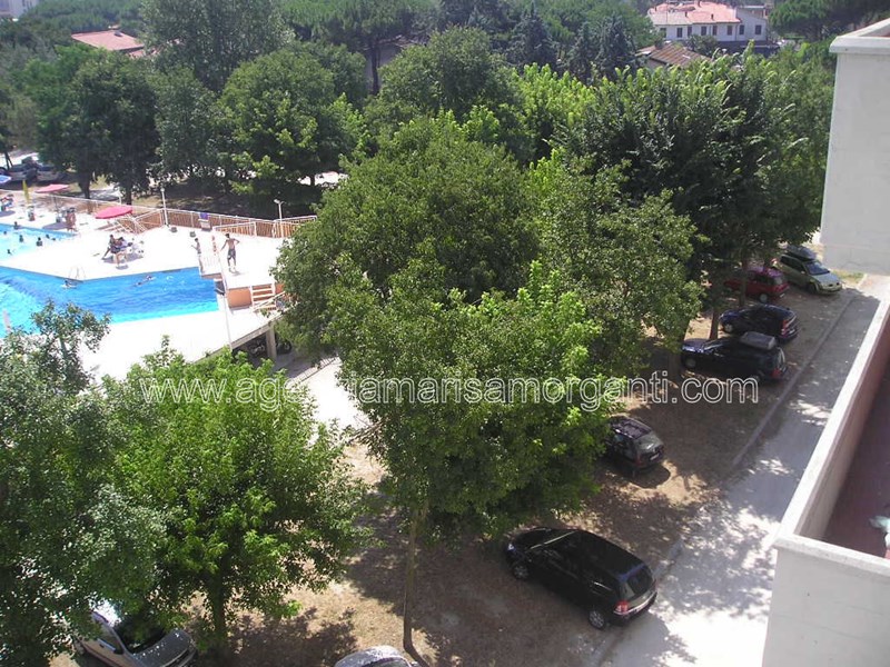 Rif. SW121 Lido Adriano ,Ravenna, in contesto residenziale con piscina privata, appartamento al quinto piano con ascensore, composto da ingresso, soggiorno con angolo cottura, disimpegno, due camere letto, bagno ristrutturato, balcone, cantina, riscaldamento autonomo, aria condizionata, arredamento, infissi in pvc con vetrocamera, posto auto scoperto nell'area cortilizia. E' situato in zona centrale a pochi metri dal supermercato e dai servizi.