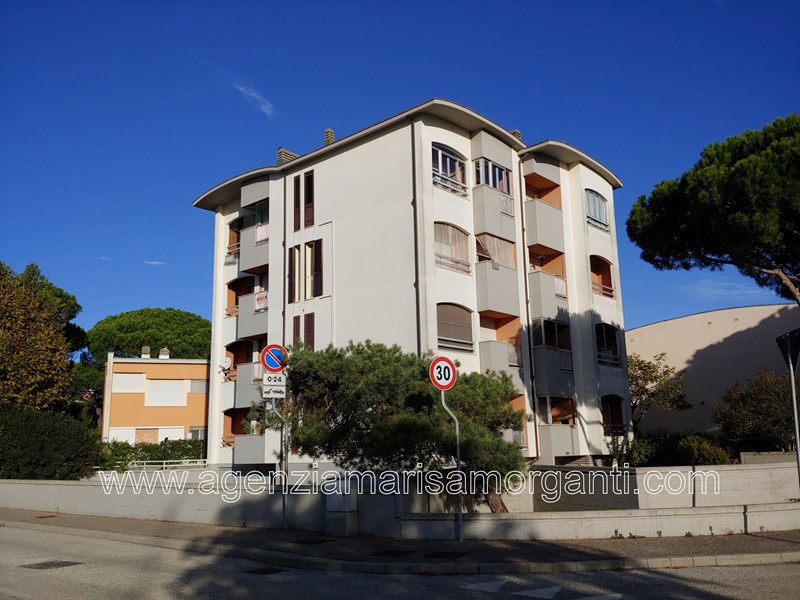 Rif. B721 Lido Adriano, Ravenna, a 300 metri dal mare, appartamento al terzo piano con ascensore, composto da ingresso, soggiorno spazioso, cucina, disimpegno, camera letto, bagno, tre balconi di cui uno con il caminetto, predisposizione al riscaldamento autonomo, ampia cantina al piano terra con accesso dall'esterno, giardino condominiale. L'appartamento e' situato in una palazzina di 12 unità nella zona centrale della localita'